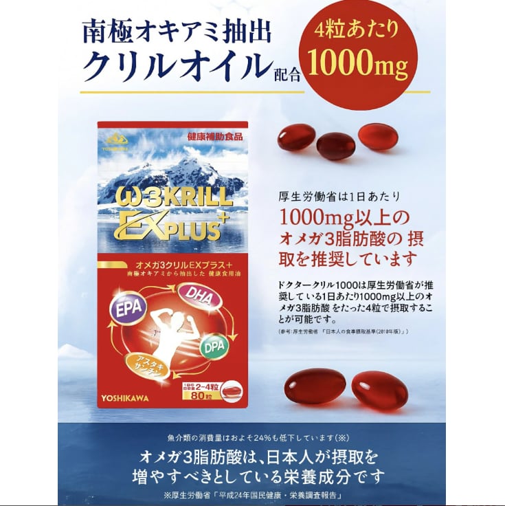 オメガ3 クリル EX PLUS(80粒入り)系脂肪酸 EPA DHA DPA 南極オキアミ アスタキサンチン オメガ3 系脂肪酸含有 クリルオイル サプリメント